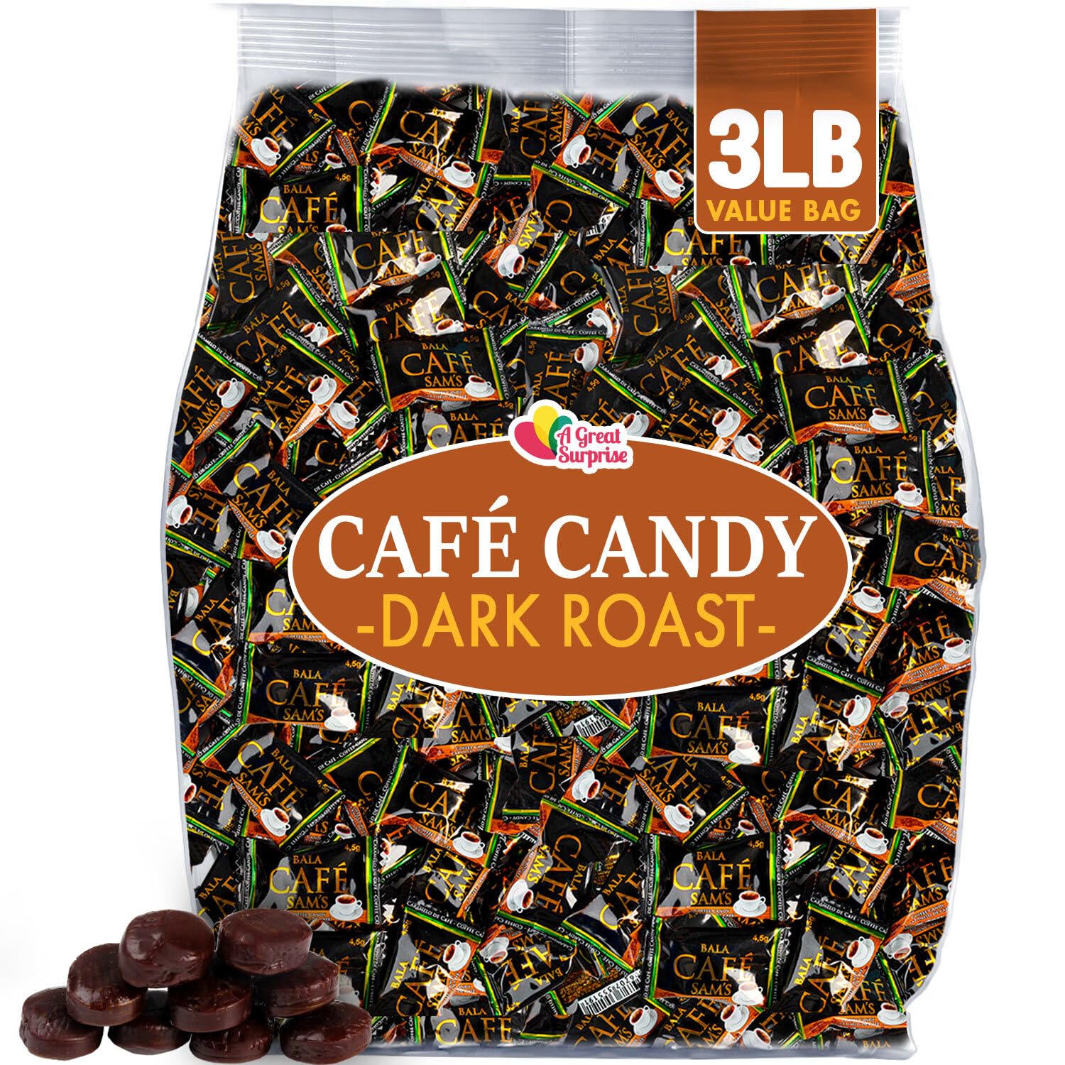 A Great Surprise Coffee-flavored Hard Candies - 3 Pounds - Individually Wrapped - Big Bulk Coffee Candy Original (Dark Roast)