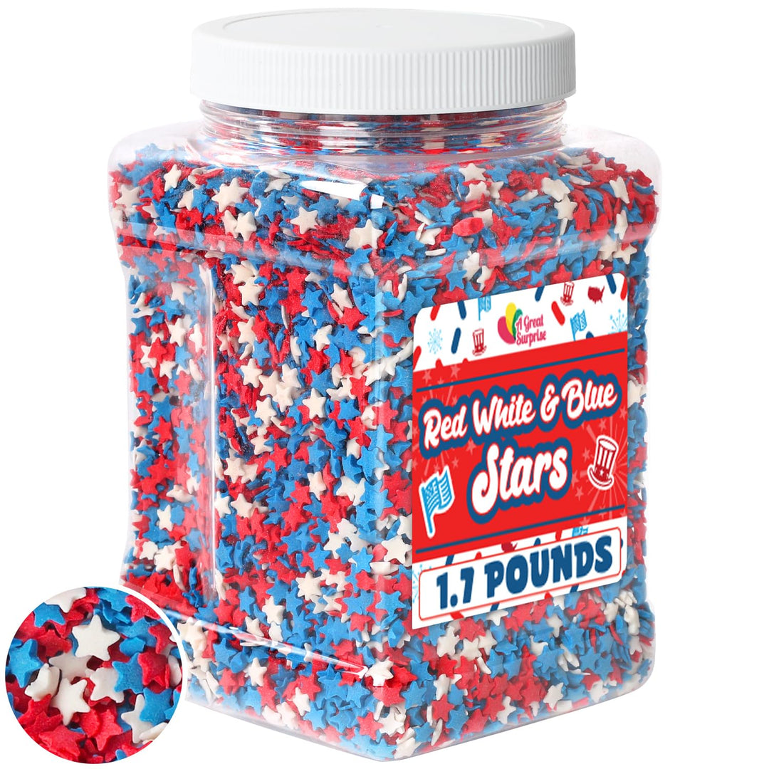 Patriotic Sprinkles - 1.7 Pounds - Red, White and Blue Star - Star Confetti for Cupcakes