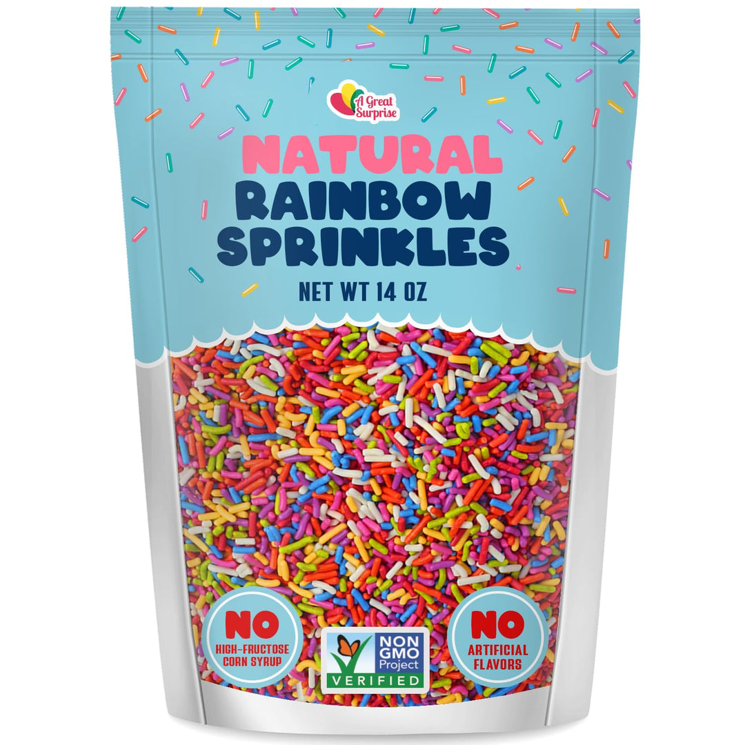 Bulk A Great Surprise Dye Free Rainbow Sprinkles - 14 Ounces - Naturally Colored Rainbow Jimmies - Vegan, Non-GMO Dessert Toppings for Ice Cream, Cookies, Cupcakes, Cake Decorating