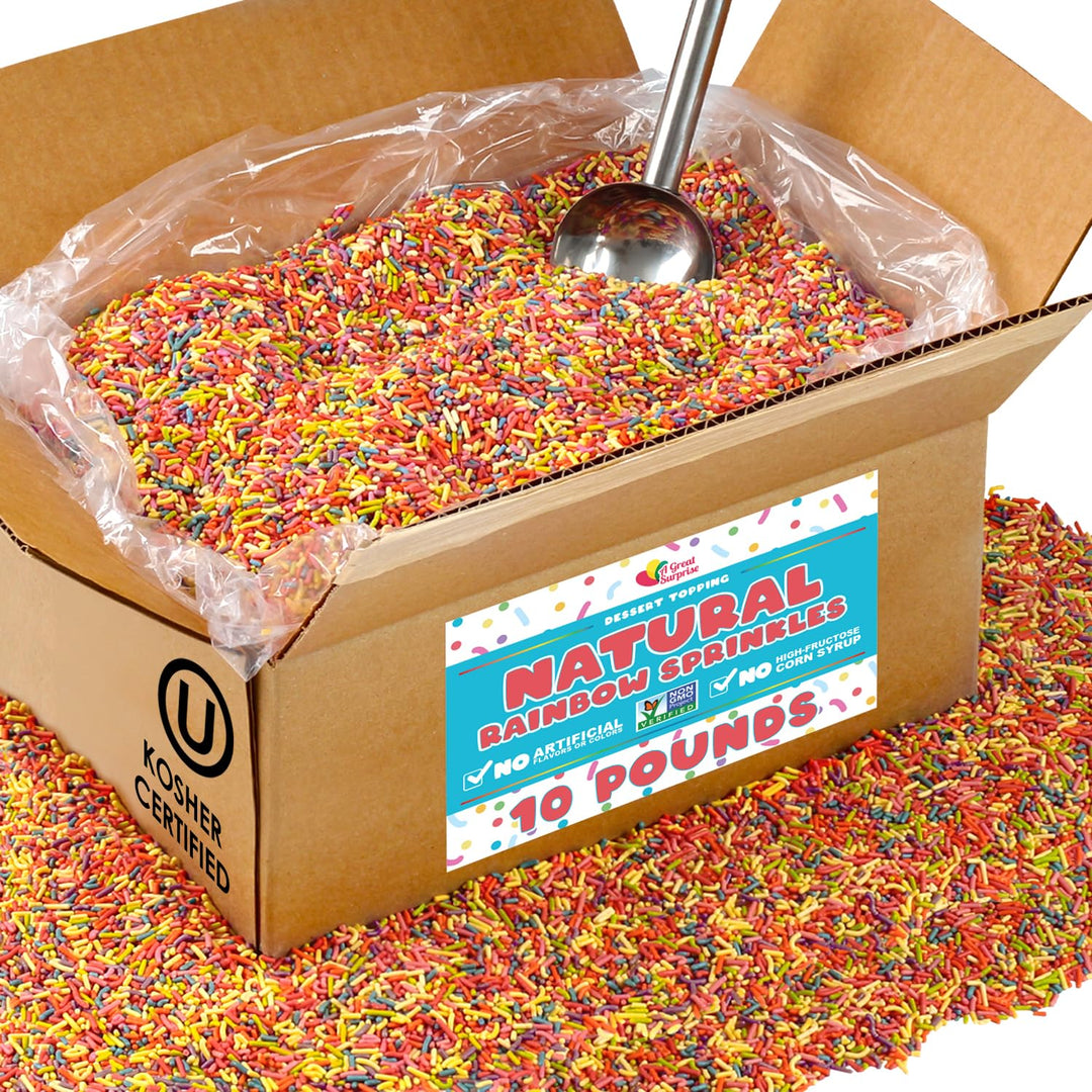 Bulk Natural Rainbow Sprinkles - 10 LB Wholesale - Kosher - Non-GMO, Dye-Free Jimmies - Bakery-Grade Sprinkles for Cakes, Ice Cream, Cookies, Catering & Large Events