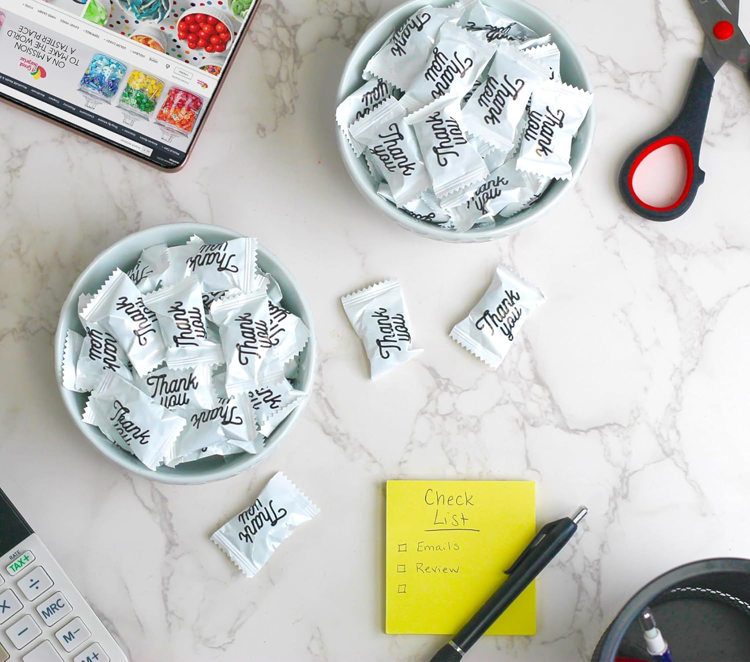 - Elegant and Upscale Design: Each mint candy is wrapped in a sophisticated white wrapper with black "Thank You" writing, making them ideal for upscale party favors, wedding receptions, and office candy dishes.